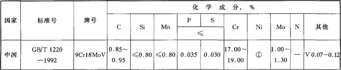| 释义 | S46990 9Cr18MoV (1)化学成分 表3-155 国内外相应牌号及化学成分
