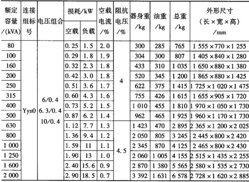 35kV S9系列电力变压器技术数据见表4-5。 表4-5 S9系列(35kV级)无励磁调压电力变压器技术数据