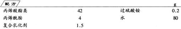 制法 在装有搅拌器、温度计、回流冷凝器、加料漏斗的三颈烧瓶中,加入乳化剂、水,搅拌升温至83℃,滴加混合单体,控制滴加速度,约30min加完,然后继续反应30min,冷却、过滤、包装,即为成品。主要用于丙纶,涤/棉及其他织物的涂料印花胶黏剂。 |