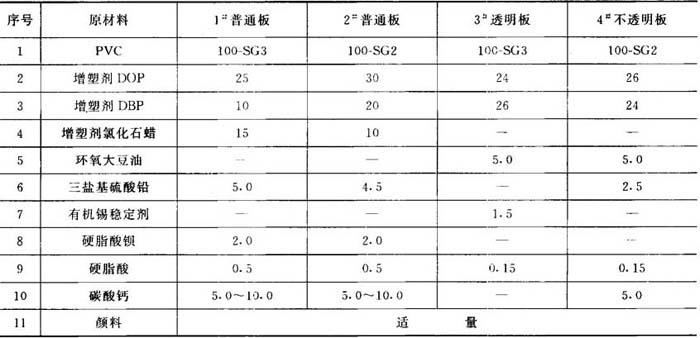 几种SPVC板材的配方实例见表9-7。