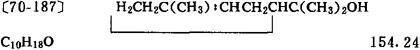 [异松节油透醇;松脂醇;1-萜烯-8-醇;羟四甲六碳烯环;松油醇;松节油透醇;Lilacine;ρ-Menth-1-en-8-ol;Terpilenol;α,α,4-Trimethyl-3-cyclohexene-1-methanol] M.I.11,9103 性状 无色粘稠状液体。是α、β、γ三种异构体的混合物。有丁香味和甜味。能与醇、醚相混溶,难溶于水。bp 213-218℃;