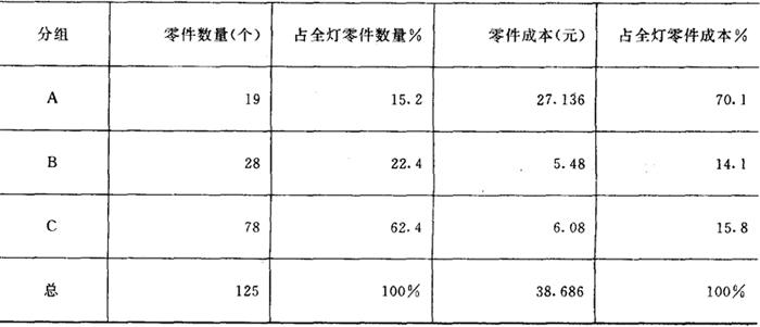 表2 Ⅰ型矿灯A组零部件成本占全灯成本比重表