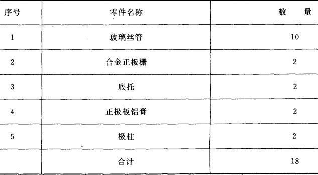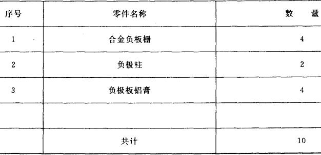 表5 负极板组零件数