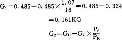 式中:GU为Ⅰ型矿灯盖装配和锁装配的重量0.1064kg; PS为ABS塑料比重1.07; PK为耐酸不锈钢比重7.85。代入原式: