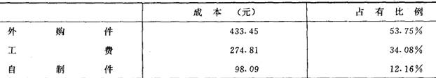 两种机器的市场价值系数之比= 调查结果表明X通讯机潜在的市场是广阔的,影响销售的主要原因是提供的服务差,产品价格高。于是在改善服务和开展功能——成本分析这两个方面开展工作。 二、产品成本及功能分析 1.列举成本分布表,确定分析重点 从X型无线电话机的成本分布中可见,占无线电话机成本87.83%的是外购元器件和工费,自制件所占比例仅12.16%(见表2)。 表2 成本分布表