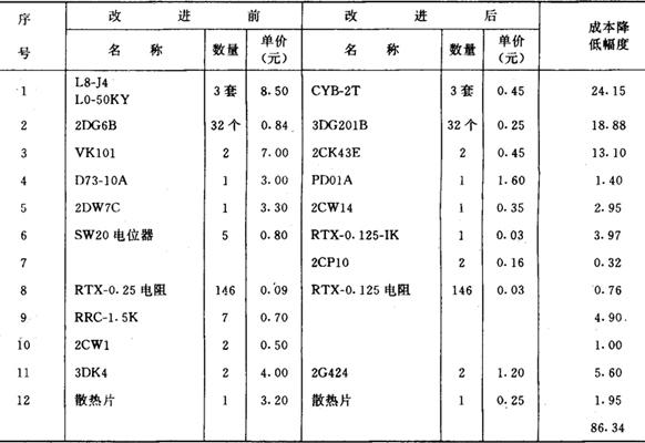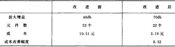 所以,成本分析和功能分析的重点应放在(1)工时费用、(2)外购件成本、(3)接收机等三个方面。 2.系统分析、综合评价实例 (1)经对元器件的功能成本分析,去除多余功能前后的对比(见表4)。 表4