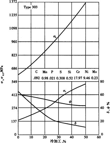 (4)冷作硬化 Y1Cr18Ni9钢冷作硬化特性见图1-34。