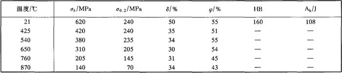 注:①可加入≤0.6%Mo。 (3)力学性能 Y1Cr18Ni9和Y1Cr18Ni9Se的室温瞬时力学性能见表1-30。 表1-30 Y1Cr18Ni9、Y1Cr18Ni9Se的室温力学性能