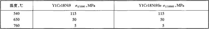 b.高温长时力学性能 Y1Cr18Ni9和Y1Cr18Ni9Se的高温蠕变性能见表1-32。 表1-33 退火态Y1Cr18Ni9和Y1Cr18Ni9Se的蠕变强度