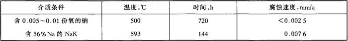 (7)耐蚀性 在干燥和大多数中等腐蚀环境中,其耐蚀性相当于1Cr18Ni9,在湿态大气中形成锈蚀膜,在严苛腐蚀介质中其耐蚀性不如1Cr18Ni9。同1Cr18Ni9一样,它们不耐敏化态晶间腐蚀。在液态钠和NaK中的腐蚀速度见表1-34。 表1-34 Y1Cr18Ni9钢在液态Na和NaK中的腐蚀速度