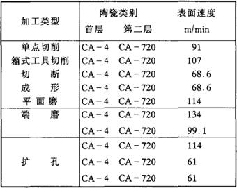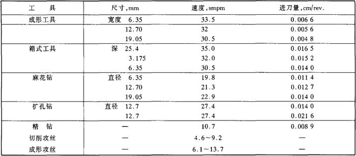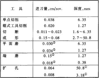 注:①扩孔钻直径。②cm/tooth 表1-37 采用陶瓷工具的进刀量和速度