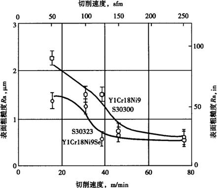图1-39 Y1Cr18Ni9和Y1Cr18Ni9Se的磨削加工的表面粗糙度 |