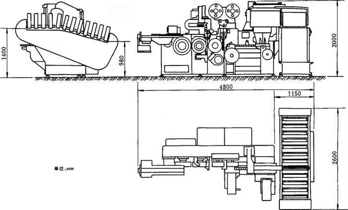 图9-4-8 带YB15(A400)卸盘机的YB25(X1-S)包装机安装示意图 4.生产厂家 上海烟草工业机械厂。 |