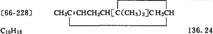 性状 无色透明液体。有松节油气味。能与乙醇、乙醚等有机溶剂相混溶,能溶解松香,不溶于水。bp 154-158℃; 0.858; 1.466。