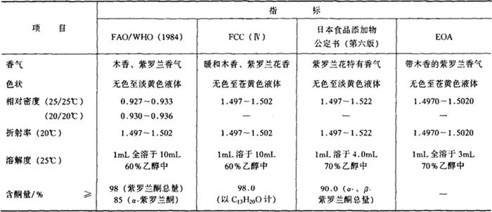 性状 无色或淡稻草色到淡黄色油状液体。沸点237℃,闪点104℃。不溶于水和甘油,溶于乙醇、丙二醇和油。具暖和木香、树脂-花香和极甜的香气,持久性中等。本品不很稳定,不宜长期贮存。