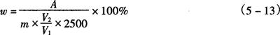 式中 w——样品中β-胡萝卜素质量分数,% A——样品溶液吸收度读数 m——样品的质量,g V1——样品稀释的总体积,mL V2——测定用吸取样品溶液体积,mL 2500——β-胡萝卜素标准品的百分吸收系数( 三、食品中β-胡萝卜素的测定 (一)第一法 高效液相色谱法 1.原理 样品中的β-胡萝卜素,用石油醚+丙酮(80+20)混合液提取,经三氧化铝柱纯化,然后以高效液相色谱法测定,以保留时间定性,峰高或峰面积定量。 2.试剂和溶液 2.1 石油醚 沸程30~60℃,分析纯。 2.2 甲醇 分析纯,需重蒸。 2.3 丙酮 分析纯。 2.4 己烷 分析纯。 2.5 四氢呋喃 分析纯。 2.6 三氯甲烷 分析纯。 2.7 乙腈 色谱纯。 2.8 三氧化二铝 层析用,100~200目,140℃活化2h,取出放入干燥器备用。 2.9 含碘异辛烷溶液 精确称取碘1mg,用异辛烷溶解并稀释至25mL,摇匀备用。 2.10 α-胡萝卜素标准溶液 精确称取1mgα-胡萝卜素(Sigma公司生产),加入少量三氯甲烷溶解,然后用石油醚溶解并洗涤烧杯数次,溶液转入25mL容量瓶中,用石油醚定容,浓度为40μg/mL,放入-18℃储存备用。 2.11 β-胡萝卜素标准溶液 精确称取β-胡萝卜素12.5mg于烧杯中,先用少量三氯甲烷溶解,再用石油醚溶解并洗涤烧杯数次,溶液转入50mL容量瓶中,用石油醚定容,浓度为250μg/mL,-18℃储存备用,二个月内稳定。根据新需浓度取一定量的β-胡萝卜素标准液用移动相稀释成100μg/mL。 2.12 β-胡萝卜素标准使用液 分别吸取β-胡萝卜素标准溶液0.5mL,1.0mL,2.0mL,3.0mL,4.0mL,5.0mL于10mL容量瓶中,各加移动相至刻度,摇匀后,即得β-胡萝卜素标准系列,分别含β-胡萝卜素5μg/mL,10μg/mL,20μg/mL,30μg/mL,40μg/mL,50μg/mL。 2.13 β-胡萝卜素异构体 精确称取1.5mgβ-胡萝卜素于10mL容量瓶中,充入氮气,快速加入含碘异辛烷溶液10mL,盖上塞子,在距20W的荧光灯30cm处照射5min,然后在避光处用真空泵抽去溶剂,用少量三氯甲烷溶解结晶,再用石油醚溶解并定容至刻度,浓度为150μg/mL,-18℃保存。 3.仪器 3.1 高效液相色谱仪。 3.2 离心机。 3.3 旋转蒸发仪。 4.测定方法 4.1 样品提取。 4.1.1 淀粉类食品:称取10.0g样品于25mL带塞量筒中(如果样品中β-胡萝卜素量少,取样量可以多些),用石油醚或石油醚+丙酮(80+20)混合液振摇提取,吸取上层黄色液体并转入蒸发器中,重复提取直至提取液无色,合并提取液,于旋转蒸发器上蒸发至干(水浴温度为30℃)。 4.1.2 液体食品:吸取10.0mL样品于250mL分液漏斗中,加入石油醚+丙酮(80+20)20mL提取,然后静置分层,将下层水溶液放入另一分液漏斗中再提取,直至提取液无色为止。合并提取液,在旋转蒸发器上蒸发至干(水浴温度为30℃)。 4.1.3 油类食品:称取10.0g样品于25mL带塞量筒中,加入石油醚+丙酮(80+20)提取。反复提取,直至上层提取液无色,合并提取液,于旋转蒸发器蒸发至干。 4.2 纯化 将4.1.1、4.1.2、4.1.3的样品提取液残渣,用少量石油醚溶解,然后进行氧化铝柱层析。氧化铝柱为1.5cm(内径)×4cm(高)。先用洗脱液丙酮+石油醚(5+95)洗氧化铝柱,然后再加入溶解样品提取液的溶液,用丙酮+石油醚(5∶95)洗脱β-胡萝卜素,控制流速为20滴/min,收集于10mL容量瓶中,用洗脱液定容至刻度。用0.45μm微孔滤膜过滤,滤液作HPLC分析用。 4.3 测定。 4.3.1 HPLC参考条件如下: 分析柱:大连化物所生产的spherisorbC18柱4.6×150mm 移动相:甲醇+乙腈(90+10) 流速:1.2mL/min 波长:448nm 4.3.2 样品测定:吸取4.2项下已纯化的溶液20μL,注入高效液相色谱仪,依法操作,从标准曲线查得或回归求得所含β-胡萝卜素的量。 4.3.3 标准曲线:分别注射标准使用液各20μL,进行HPLC分析,以峰面积对β-胡萝卜素浓度画标准曲线或进行回归。 5.分析结果的表述 5.1 计算: