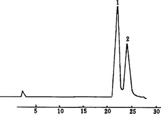 图5-4 α-、β-胡萝卜素色谱图 1—α-胡萝卜素 2-β-胡萝卜素