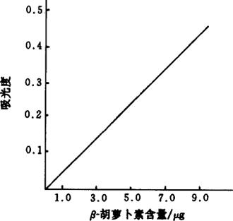 式中 ρ——胡萝卜素标准溶液浓度,mg/mL A——吸光度 E——β-胡萝卜素在正己烷中,波长450nm,比色杯厚度1cm,溶液浓度为1μg/mL的吸光系数为0.2638