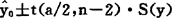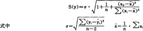 式中 t(a/2,n-2)——自由度为n-2,置信度为1-a时t分布的临界值,可参考有关文献由t 分布表查出。 S(y)——经过修正的因变量y的标准差。