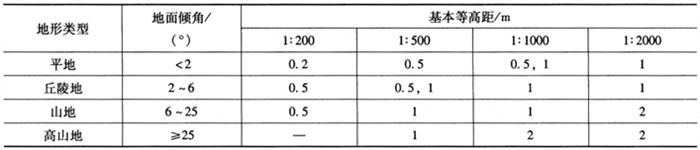 5)同一测区相同比例尺地形图不得采用两种基本等高距,地形图基本等高距的选择见表13-1。