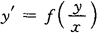 的方程叫做齐次方程,f为已知. 求解方法: 令 u+xu′=f(u) 分离变量后即可积分. 一般的齐次方程 形如