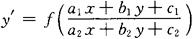 的方程称为齐次方程. 求解方法: (1)当 x=X+a,y=Y+b, 原微分方程即可化为齐次方程,其中a,b是