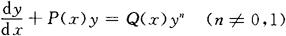 的方程称为伯努利方程. 求解方法:令z=y1-n,则