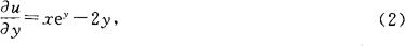 由(1),(2)得 C′(y)=-2y, 因此 C(y)=-y2+C1, 所以 u(x,y)=xey-y2+C1. 通解为 xey-y2=C(C=-C1). 方法2