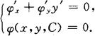后一个积分中将x视作常数.方程通解为 u(x,y)=C, 即