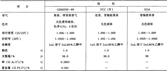 C11H14O2 相对分子质量 178.23 性状 无色液体,沸点240℃,闪点107℃。不溶于水、丙二醇、甘油,溶于乙醇和油。具有重的、果花香气,主要是似梅子的果香。 制法 丁酸和苯甲醇为原料经合成制得。 质量标准