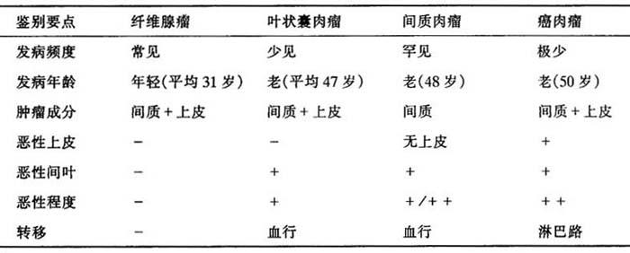 | 字词 | 七、乳腺间叶组织肿瘤和瘤样病变的鉴别诊断 |