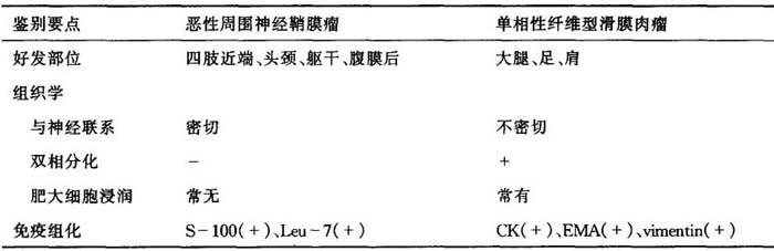 | 字词 | 七、恶性周围神经鞘膜瘤与单相性纤维型滑膜肉瘤的鉴别诊断 |