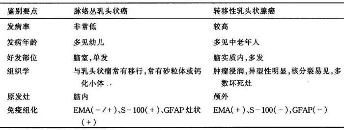 (三)脉络丛乳头状癌与转移性乳头状腺癌的鉴别