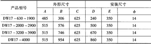 图1-27 DW17系列固定式外形及安装尺寸 表1-46 DW17系列固定式外形及安装尺寸/mm