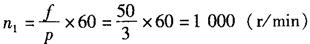 【例2】 一台三相六极异步电动机,电源频率为50Hz,其转差率为3.0%,求电动机的额定转速。 解:按公式(2-4)求出同步转速n1为: