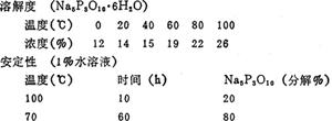 性能 白色颗粒或粉末状物是链状缩合磷酸盐类。三聚磷酸钠有无水的和六水合物,因制备条件不同,无水物有Ⅰ型、Ⅱ型两种变异体。Ⅰ型较Ⅱ型稳定。Ⅱ型在小于450℃时较稳定,在500~600℃时会转变成Ⅰ型,当温度大于620℃时,会分解成焦磷酸钠结晶体和一个含有49.5%(重量)的聚偏磷酸钠熔体。六水合物为主方柱体结晶物,在70℃以上脱水时即分解,生成正磷酸钠和焦磷酸钠。三聚磷酸钠溶液在室温下稳定,其水解速度因温度、pH值等因素而异。重要的物性参数: