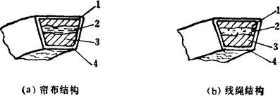 | 释义 | 三角带传动 在一般机械传动中,应用最广的是三角带传动。标准的三角带都制成无接头的环形。其结构主要有下列两类: 帘布结构(图3-5-40a)——由伸张层1(胶料)、强力层2(胶帘布)、压缩层3(胶料)和包布层4(胶帆布)组成。