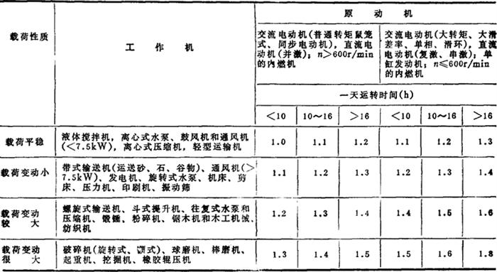 (二)三角胶带传动设计计算 1.确定计算功率Pca Pca=KA·P(kW) (3-5-48) 式中 P——传递的额定功率(kW) KA——工作情况系数,见表3-5-42 表3-5-42 工作情况系数KA