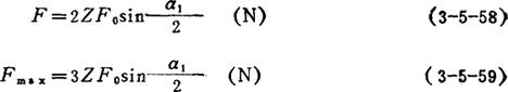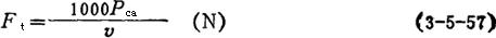 式中 q——每米带长重量(kg/m),见表3-5-41 g——重力加速度,g=9.81m/s2 kα——包角系数 9.有效圆周力F3