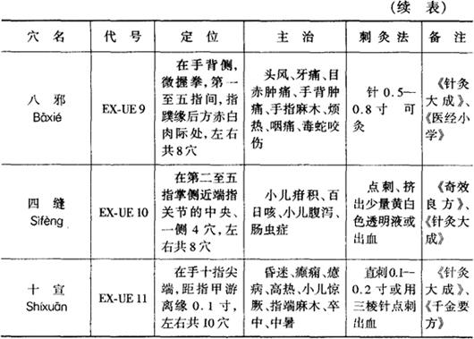 穴名、定位、主治和刺灸法,见表3-45。穴位分布见图3-21。