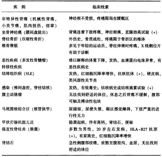 下背痛的鉴别诊断见表10-4。 表10-4 下背痛的鉴别诊断