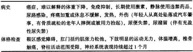 二、临床表现 由于下背痛病因复杂,如何对疾病诊断,是一个比较困难的问题。故病史的采集和临床体格检查显得尤为重要。 1.病史的采集 临床上不少下背痛的疾病,其病史的采集有着举足轻重的地位。年龄、性别、职业等有较高的参考价值。例如,青壮年的下背痛,应考虑到强直性脊柱炎、脊椎结核和年轻性脊椎骨软骨炎,中老年应想到增殖性脊椎炎、脊椎骨质疏松或脊椎转移癌,女性不应忘记盆腔炎及其他妇科疾病。某些工种由于体位要求,可引起局部损伤,造成下背痛。外伤史和既往史:腰椎间盘突出、脊椎骨折、腰肌劳损等常和外伤及工作性质有关,既往结核可以间接提供脊椎结核的证据,肿瘤病史可提供脊椎转移的可能性。疼痛特点:应询问发病的急缓、疼痛性质、部位、是否放射及范围与体位、用力、咳嗽的关系。腰椎间盘突出、脊椎结核、脊椎肿瘤压迫神经根时,常出现沿坐骨神经分布区的放射性痛,这种根性痛可因咳嗽、打喷嚏、用力等动作而加剧。脊柱外伤时活动使疼痛加剧,而腰肌纤维组织炎活动后明显减轻。 2.体格检查 对于下背痛应做脊柱检查,检查部位依次从颈胸腰骶,逐步按压与轻扣棘突、关节横突、骶棘,某处压痛明显,提示病变的部位。包括有无脊柱畸形、椎旁肌肉有无痉挛;背部软组织有无肿胀、充血、皮下血肿、肌肉痉挛等,有无冷性脓肿及窦道。运动范围(前屈、屈曲受限的程度等)、椎管狭窄的病人在伸展运动时可有疼痛,还要进行下肢的运动、感觉和反射功能检查。对背痛持续数周、伴有全身疾病危险因素者应全面检查,尤其注意恶性疾病和胰腺病。背痛伴放射症状者应做神经科检查(直腿抬高试验)以确定神经根受累的部位和程度。纵轴扣击痛检查也是常用方法之一(嘱病人坐位,医生用一手掌放于病人头上,另一手轻捶之,疼痛部位即可能是病变部位)。最后,全身系统检查也是不可缺少的步骤。 三、辅助检查 1.X线检查 X线检查是下背痛最基本的影像学诊断手段。可明确脊柱病变的准确部位和病变性质,对脊柱疾病的诊断有重要价值。正侧位像可观察到椎弓棘突、椎旁组织及椎体形态。脊髓造影对弄清神经与脊椎间的解剖关系很有帮助,其中,椎间盘造影(diskgraphy)常被用于诊断椎间盘脱出及脊椎滑脱症。CT适于观察脊柱与椎管横断面的骨性变化,在外伤性骨折、椎管内有无骨片及脊椎转移瘤的定位中有一定价值。MRI对软组织扫描清晰,无伪影干扰,对椎间盘变性可进行定性评估。有报道对40岁以下无症状者进行CT检查发现20%有椎间盘脱出,40岁以上者为27%,而MRI检查60岁以上者可达1/3。因此,应选择性地利用此检查,以免造成过多假阳性,CT与MRI用于怀疑肿瘤、炎症以及因持续进行性根性神经病病人有重要价值。骨扫描相对缺乏特异性,当临床或血沉支持恶性肿瘤,而X线片正常者可以采用,对脊椎炎症和肿瘤的早期诊断以及确认病灶的扩散较为有用。有人认为电生理学检查是惟一能客观评价神经病变是否存在的手段,包括肌电图、神经传导速度和体感诱发电位等,尤其肌电图可以对下位神经原损害定性,并在某种程度上定量。但也有人认为单纯下背痛不需做此检查,有明确神经根病的下背痛,肌电图并不能提供较CT或MRI更有说服力的证据。 2.实验室检查 多数下背痛不需做化验检查,但对原因不明者而又怀疑恶性肿瘤或感染时应作为重要的筛选手段。做风湿类项目化验及免疫指标的检查以排除相关疾病;B超、心电图、肾脏检查以排除胆道、心脏、泌尿系疾病引起的牵涉痛。肿瘤者因骨破坏,血钙、碱性磷酸酶可升高;C反应蛋白和血沉增高提示炎症;人类组织相容性系统-B27抗原阳性对诊断前列腺癌和强直性脊柱炎有一定价值,多发性骨髓瘤可有血清蛋白分布异常及本-周蛋白。 四、诊断及鉴别诊断 1.全身原因 引起下背痛最常见的内科疾病是恶性肿瘤和感染。脊柱压缩性骨折时应高度警惕肿瘤,转移性肿瘤多源于乳腺、肺和前列腺,其他还包括多发性骨髓瘤、白血病及原发脊髓髓内或硬膜外肿瘤。对有发热和背痛的病人应怀疑感染所致,还可由心内膜炎、椎骨骨髓炎、椎间盘炎及硬膜外脓肿引起。另外,主动脉瘤,原发于肾脏、胃肠及盆腔的疾病亦可引起下背痛。 2.椎间盘脱出 95%以上的椎间脱出发生在L4~5或L5~S1水平,前者引起疼痛和麻木,放散至大腿后面、小腿前外侧及足背内侧和足趾,查体可见足背屈无力,反射可保存。后者表现为足跖屈无力,跟腱反射消失。马尾受压常由中线部位椎间盘大块脱出所致,出现背痛、尿潴留、双腿麻木和鞍区感觉障碍。 3.椎管狭窄 由于构成椎管的骨、椎间盘组织及黄韧带肥厚使神经组织受压。可出现特征性的神经性间歇跛行,由步行或起立引发或加重下肢疼痛、无力和感觉异常,而坐位或腰椎前屈位时症状缓解,神经性跛行有别于血管性跛行,前者在休息后疼痛持续10~15min,足背动脉搏动与皮肤温度正常,常有宽距步态和步态不稳、神经支配区感觉减退、肌力减弱、直腿抬高试验阳性。 4.风湿病和结构异常 下背痛是风湿性疾病最常见的症状,在欧美风湿科中20%的病人以下背痛就诊。常见的是关节强直性脊椎炎,该病是侵犯脊椎突起和骶髂关节的一种原因不明的慢性进行性炎性疾患,尤其以椎间盘纤维轮和周围软组织骨化为特征。40岁以前逐渐发病,疼痛多于起床后数小时随活动而缓慢减轻,