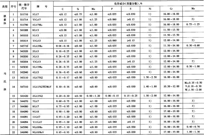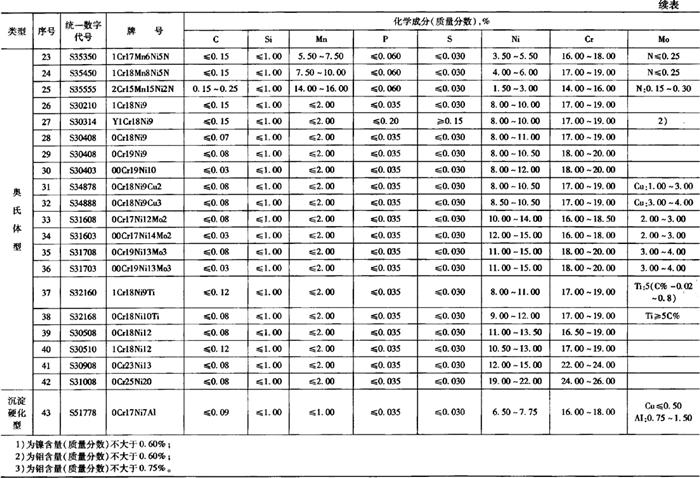 表5-68 不锈钢盘条用钢的牌号及化学成分