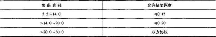 表5-70 盘条纵向裂纹状的缺陷深度mm