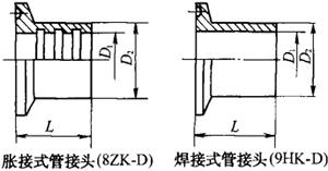 不锈钢胀接式和焊接式管接头结构见图4-14-23,规格见表4-14-28。