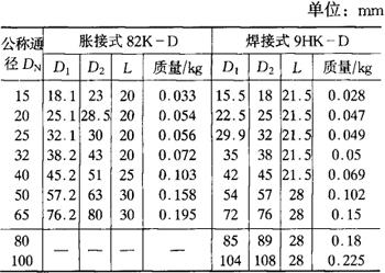 表4-14-28 不锈钢胀接式和焊接式管接头规格