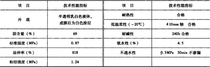 (四)青龙牌丙烯酸高级弹性防水涂料 1.青龙牌丙烯酸高级弹性防水涂料的特点 青龙牌丙烯酸高级弹性防水涂料,系采用德国先进的技术,使用德国巴斯夫(BASF)公司的丙烯酸胶乳,配以适量的助剂、填料等优质材料配制的一种水乳型、不含有机溶剂的单组分防水涂料。 青龙牌丙烯酸高级弹性防水涂料不仅具有无毒、无味、无污染、高弹性、无接缝、耐老化、耐候性优异等特点;而且具有耐水性、耐久性优异,能在潮湿的多种材质的基面上直接施工,在立面、斜面和顶面上施工不流淌,可根据需要加入颜料配制成彩色涂层,有利于建筑节能等特性。 2.青龙牌丙烯酸高级弹性防水涂料的适用场合 青龙牌丙烯酸高级弹性防水涂料既可以用于房屋、地下工程、桥梁、隧道等的防水,也可以用作胶粘剂及外墙装饰涂料。 青龙牌丙烯酸高级弹性防水涂料的技术性能见表10-74。 表10-74 青龙牌丙烯酸高级弹性防水涂料的技术性能