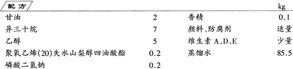 制法 将维生素A、D、E、颜料、异三十烷混合,搅拌均匀,成为油剂;将聚氧乙烯(20)失水山梨醇四油酸酯、防腐剂溶于乙醇,然后加入油剂中混合制成醇油剂;将甘油、磷酸二氢钠、水溶性颜料溶于蒸馏水,制成水剂。最后在搅拌下将醇油剂加入水剂中,混合后用150~200目的尼龙布过滤,静止后形成两层化妆水。使用时摇匀,能形成O/W型乳状液。 |