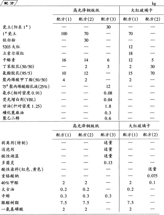 制法 按配比分别将5个配方中的全部物料混合。研磨均匀,即得5种不同的涂料。 铸涂纸的生产,现使用的方法主要有两种:原纸贴缸法和成膜转移法,相比之下,原纸贴缸法较简单,应用较多。 原纸贴缸法是在原纸上经过普通涂布法涂上涂料液,在还是湿润状态时即压贴在高精度镀铬烘缸面上,当纸页干燥后从缸面上剥离下来即可。 |