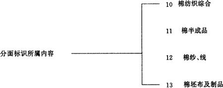一级与二级类目之间,设置分面标识;二级类目之间的逻辑划分,用分面标识加以区别,这样,既限定了二级类目的专业范围,又弥补了采用双位数字编列而使类目等级概念不清的缺点。 分面标识只用来说明专业范围,不作分类标识之用。其形式如下: 一级类目标识符号→W 纺织←一级类目名称 分面标识→W10/1 9棉纺织←分面标识名称